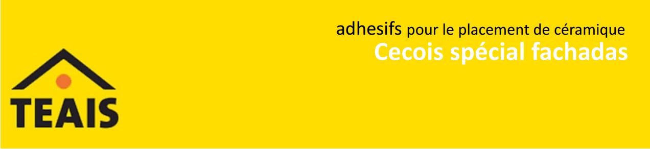 CECOIS SPECIAL FACHADAS est un ciment-colle en poudre formulé à base de ciment, de polymères, d'additifs spéciaux et d'agrégats de granulométrie sélectionnée. Mélanger avec de l’eau dans la proportion recommandée pour la pose de carrelage, céramiques etc.
